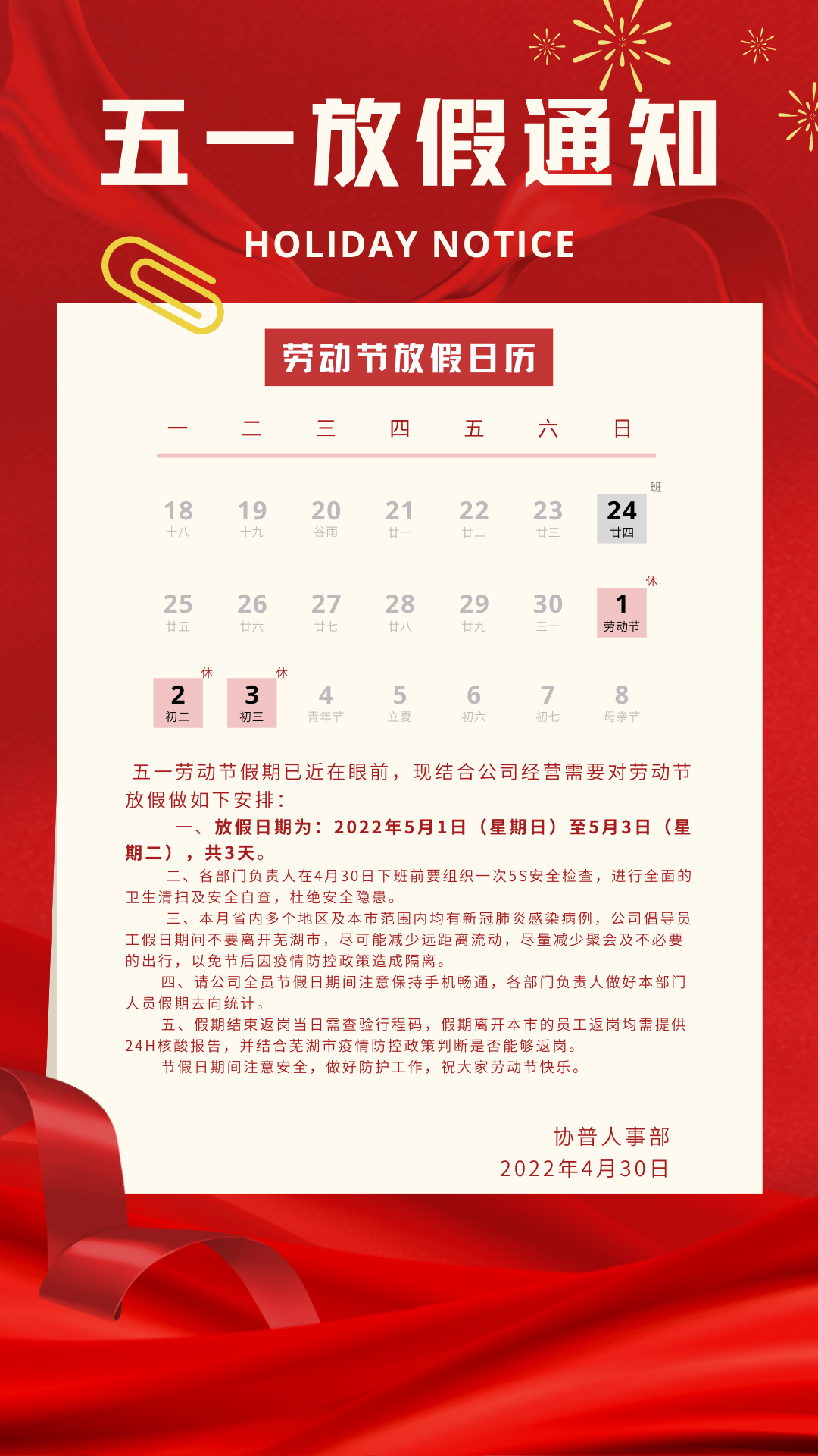 協(xié)普“五一”勞動(dòng)節(jié)放假通知